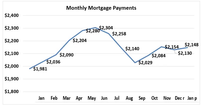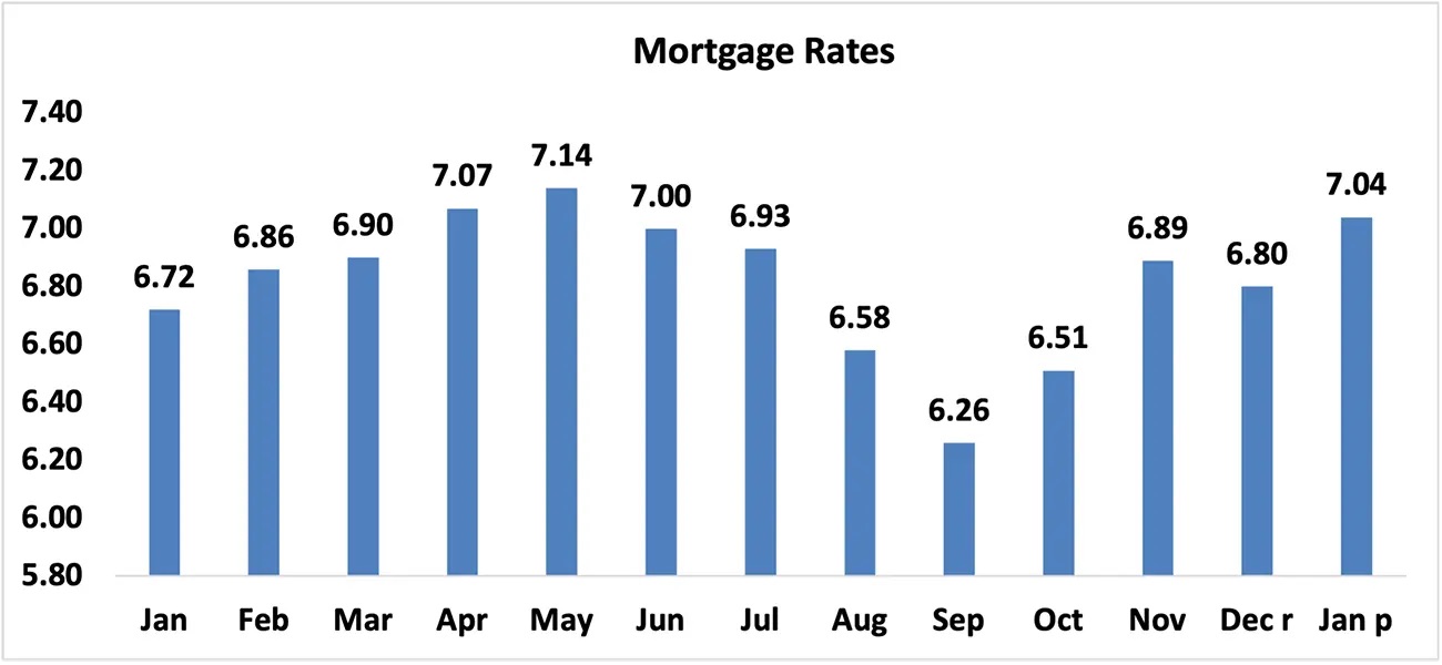 - Mortgage Rates Impact Affordability: Higher mortgage rates continue to be a significant factor affecting affordability. The effective 30-year fixed mortgage rate was 7.04% in December, up from 6.72% a year prior. This increase resulted in an 8.4% rise in monthly mortgage payments compared to last year.
