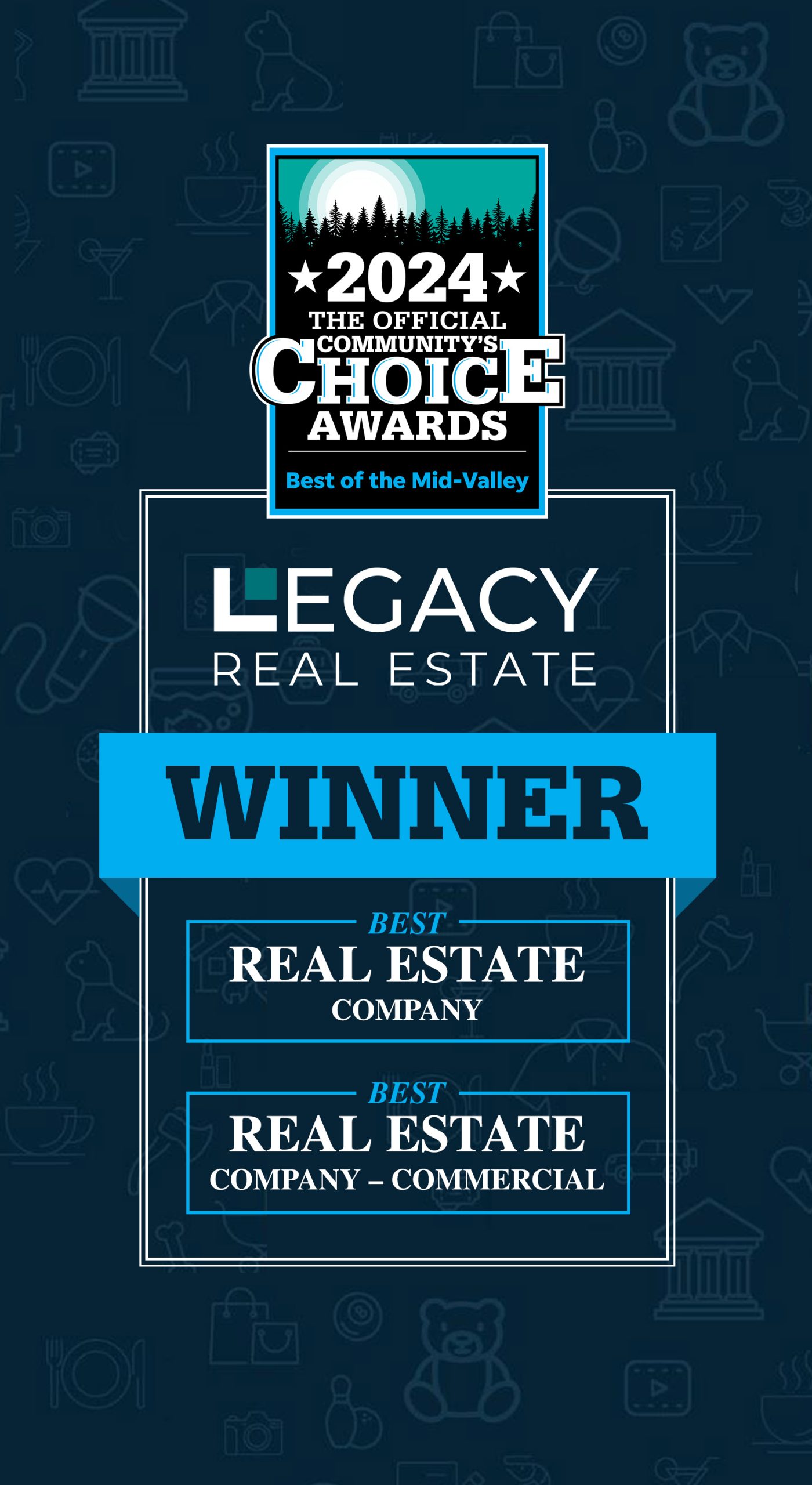 Legacy Real Estate is thrilled to announce that we have been honored with not just one, but two prestigious awards at the 2024 Best of the Mid-Valley Community Choice Awards!