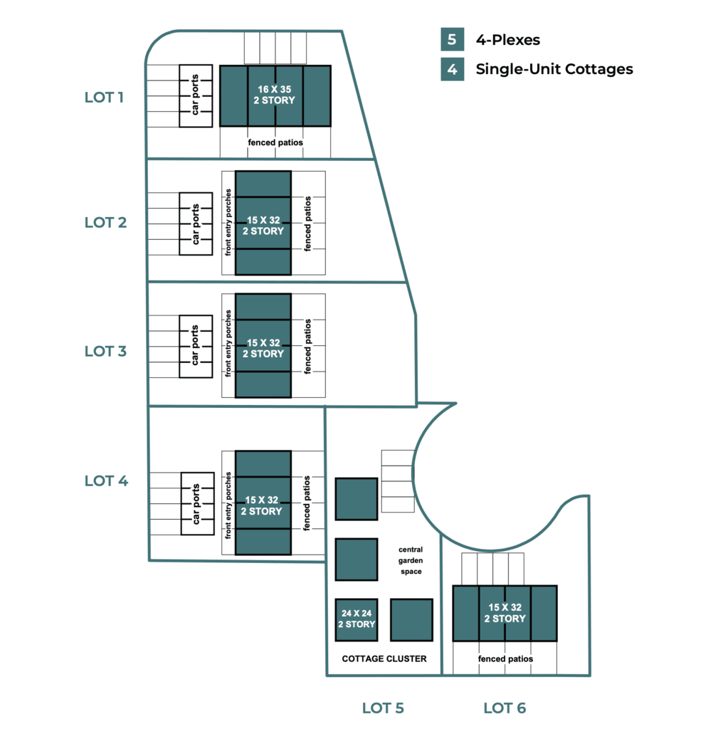 • Six-lot subdivision ranging in size from 7,008 – 11,036 sq ft